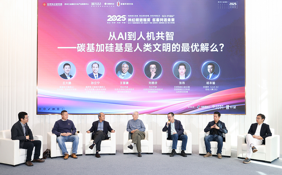 本次活動由蘇州寰宇未來文化科技有限公司、新建元控股集團旗下圓融發(fā)展公司主辦。與會人員圍繞“從AI到人機共智——碳基加硅基是人類文明的最優(yōu)解么?”和“具身智能覺醒——會是我們的工具還是朋友?”兩大主題,就科技發(fā)展對人類社會的影響,以及科幻與現(xiàn)實的深度融合路徑進行了深入交流探討。