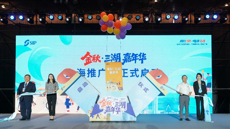 9月19日,由蘇州工業園區文體旅游局、園區商務局共同主辦的“金秋?三湖嘉年華”上海推廣季在上海中心大廈舉辦?;顒右浴跋嗉s金秋?嗨游三湖”為主題,通過精彩的文旅推介和豐富的互動環節,充分展現園區三湖的獨特魅力,并推出多項惠民禮遇,向上海市民發出誠摯的秋日邀約。園區黨工委委員、管委會副主任、宣傳部部長朱江出席活動。上海市旅游行業協會及各區旅游協會的會長代表,上海錦江、春秋、中青旅等頭部旅行商負責人,攜程、同程、美團、飛豬等文旅電商企業代表,多位文旅、生活類知名KOL,以及上海知名研學機構、旅游俱樂部、招商合作單位、重點合作企業代表等參加活動。