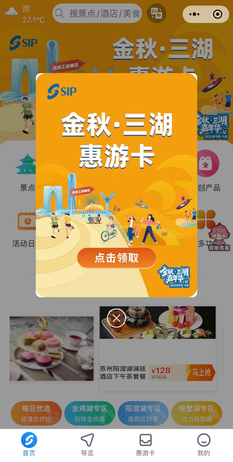 為讓市民游客“消費(fèi)更優(yōu)惠、參與更輕松”,活動(dòng)期間推出一系列針對(duì)性惠民舉措,覆蓋酒店住宿、餐飲美食、休閑零售、文旅體驗(yàn)等多個(gè)領(lǐng)域。“金秋?三湖惠游卡”重磅升級(jí)發(fā)布,市民游客通過“惠游園區(qū)”平臺(tái)免費(fèi)領(lǐng)取后,可于小程序右下角“我的”—“我的卡包”中,快速查看。